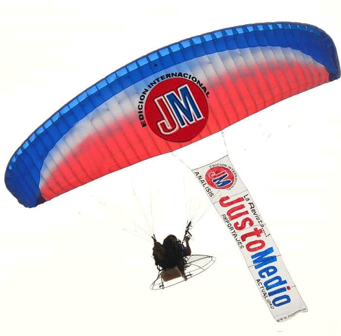 El paramotor es una aeronave ligera, versátil y eficiente. Permite realizar publicidad aérea con: