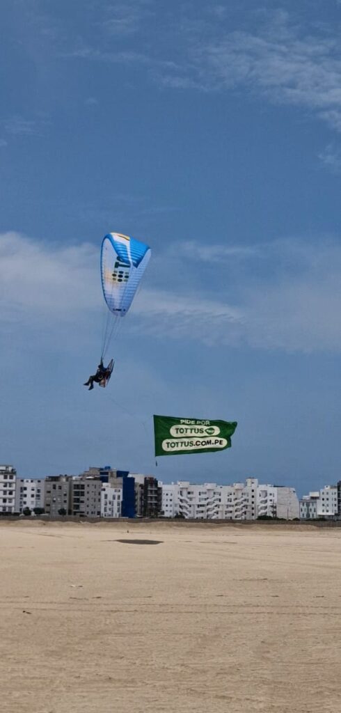 En APSAFLY somos especialistas en publicidad aérea con paramotor, ofreciendo campañas seguras, autorizadas y estratégicamente planificadas en todo el territorio peruano.